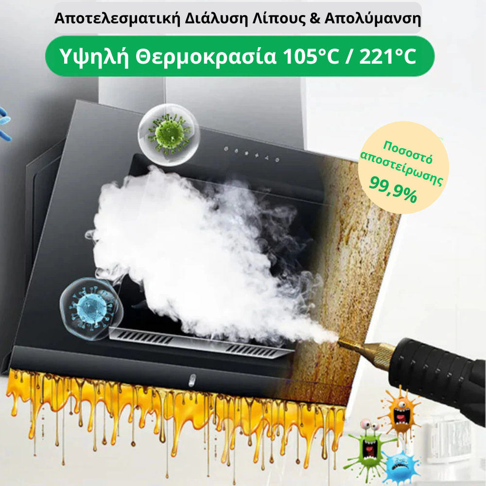 Αυτός ο πολυλειτουργικός ατμοκαθαριστής υψηλής θερμοκρασίας καθαρίζει κάθε επιφάνεια, ακόμη και τις πιο λερωμένες.